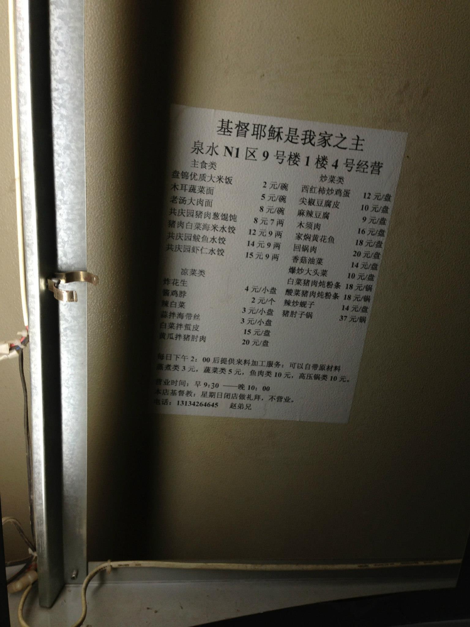 天井が剥がされ、料理屋のメニューが貼られてる。ぶったまげた!